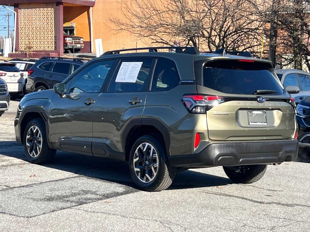 2025 Subaru Forester Premium Green Metallic Maryland State Inspected with over 120 point inspection performed by a trained technician., Exterior Parking Camera Rear, Heated door mirrors, HEATED FRONT BUCKET SEATS, MEMORY POWER DRIVER SEAT, Power door mirrors, Power moonroof: Panoramic, Power steering, Power windows, Premium Textured Cloth Upholstery, REMOTE KEYLESS ENTRY, Steering wheel mounted audio controls, Wheels: 17" x 7.0 J Dark Metallic Aluminum-Alloy.