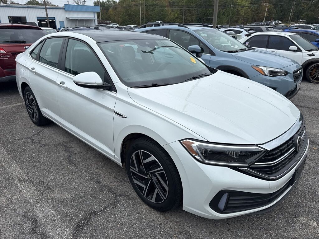 2023 Volkswagen Jetta 1.5T SEL White Maryland State Inspected with over 120 point inspection performed by a trained technician., Titan Black Leather, 9 Speakers, Air Conditioning, AM/FM radio: SiriusXM with 360L, Auto High-beam Headlights, Auto-dimming Rear-View mirror, Automatic temperature control, Brake assist, Bumpers: body-color, Delay-off headlights, Driver door bin, Driver vanity mirror, ELECTRONIC STABILITY CONTROL, Exterior Parking Camera Rear, Front Center Armrest, FRONT DUAL ZONE A/C, Front reading lights, Fully automatic headlights, Heated & Actively Ventilated Fr Comfort Spt Seats, Heated door mirrors, HEATED FRONT BUCKET SEATS, HEATED REAR SEATS, Heated steering wheel, Illuminated entry, Leather Shift Knob, MEMORY POWER DRIVER SEAT, Memory seat, Navigation System, Outside temperature display, Overhead console, Passenger vanity mirror, Power door mirrors, Power moonroof: Panoramic, Power steering, Power windows, Radio data system, Radio: MIB3 Discover Media w/8" Touchscreen Nav, RAIN SENSING WIPERS, Rear reading lights, Rear seat center armrest, Rear window defroster, REMOTE KEYLESS ENTRY, Security system, Speed control, Split folding rear seat, Steering wheel mounted audio controls, Tachometer, Telescoping steering wheel, Tilt steering wheel, Trip computer, Turn signal indicator mirrors, Ventilated front seats, Vienna Leather Seat Trim, Wheels: 17" 2-Tone Machined Alloy. CARFAX One-Owner.