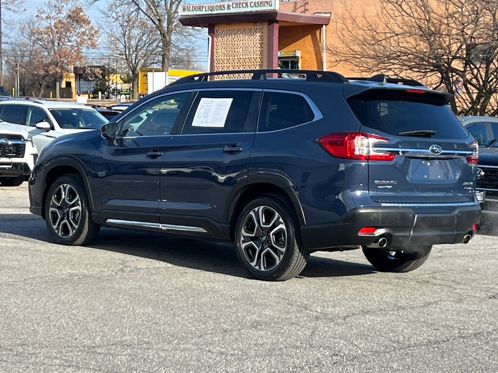 2024 Subaru Ascent Limited Cosmic Blue Maryland State Inspected with over 120 point inspection performed by a trained technician., Cabin Connect, Crystal Black Power-Folding Exterior Power Mirrors, Exterior Parking Camera Rear, Garage door transmitter: HomeLink, Heated door mirrors, HEATED FRONT BUCKET SEATS, HEATED REAR SEATS, Heated steering wheel, MEMORY POWER DRIVER SEAT, Memory seat, Outside temperature display, Panoramic Power Moonroof w/UV/Drk Tint Dual Glass, Perforated Leather-Trimmed Upholstery, Power door mirrors, POWER LIFT GATE, POWER PASSENGER SEAT, Power steering, Power windows, Radio: Subaru STARLINK 11.6" Multimedia Nav System, Reclining 3rd row seat, REMOTE KEYLESS ENTRY, Retractable Cargo Area Cover, STARLINK/Apple CarPlay/Android Auto, Steering wheel mounted audio controls, Surround View Monitor System, Technology Package, Turn signal indicator mirrors, Wheels: 20" x 7.5 J Dk Gray Alloy w/Machine Finish. CARFAX One-Owner.
