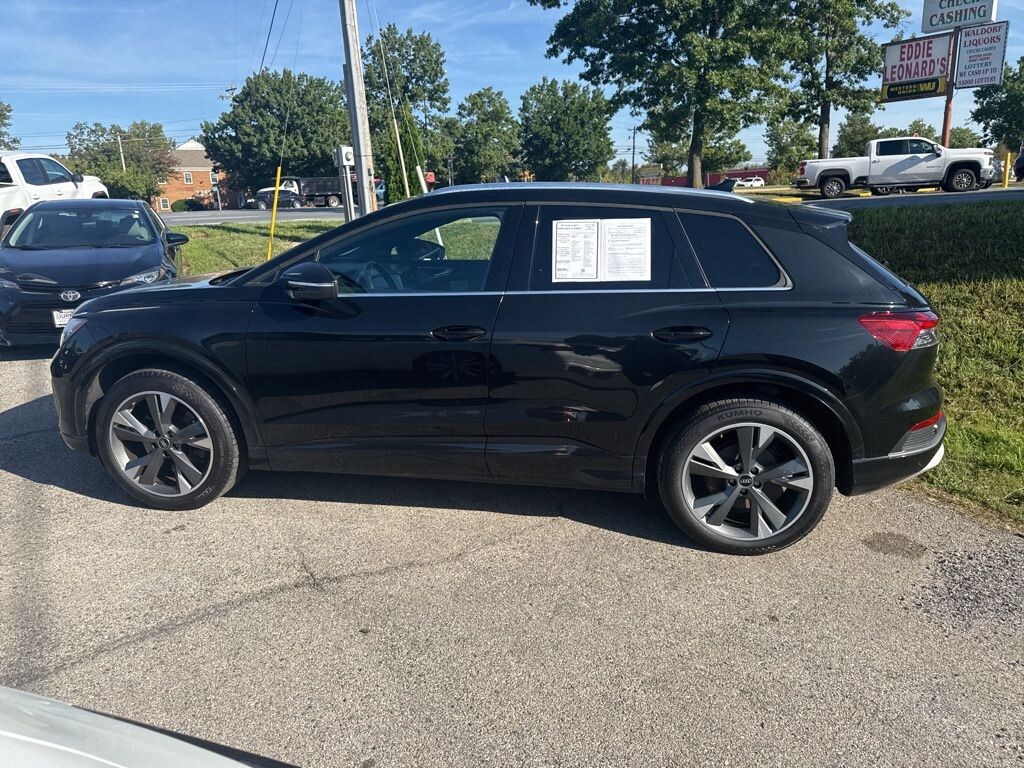 SMOOTH & POWERFUL, VERY COMFORTABLE RIDE!! 2022 Audi Q4 e-tron Premium Plus quattro Black Maryland State Inspected with over 120 point inspection performed by a trained technician., 8 Speakers, ABS BRAKES, Air Conditioning, Auto High-beam Headlights, Automatic temperature control, Brake assist, Bumpers: body-color, Delay-off headlights, Driver door bin, Driver vanity mirror, Dual front impact airbags, Dual front side impact airbags, ELECTRONIC STABILITY CONTROL, Emergency communication system: Audi connect CARE, Exterior Parking Camera Rear, Four wheel independent suspension, Front anti-roll bar, Front Center Armrest, FRONT DUAL ZONE A/C, Front reading lights, Fully automatic headlights, Genuine wood dashboard insert, Heated door mirrors, Heated Front Seats, Illuminated entry, Leather Seating Surfaces, Leather steering wheel, Low tire pressure warning, MEMORY POWER DRIVER SEAT, Occupant sensing airbag, Outside temperature display, Overhead airbag, Overhead console, Passenger door bin, Passenger vanity mirror, Power door mirrors, Power moonroof: Panoramic, Power steering, Power windows, Radio data system, Radio: Audi Sound System, RAIN SENSING WIPERS, Rear air conditioning, Rear anti-roll bar, Rear reading lights, Rear seat center armrest, Rear window defroster, Rear window wiper, REMOTE KEYLESS ENTRY, Roof rack: rails only, Security system, Speed control, Speed-sensing steering, Split folding rear seat, SPOILER, Steering wheel mounted audio controls, TBD Axle Ratio, Telescoping steering wheel, Tilt steering wheel, TRACTION CONTROL, Trip computer, Turn signal indicator mirrors, Variably intermittent wipers, Wheels: 19" 5-Arm Design. CARFAX One-Owner.