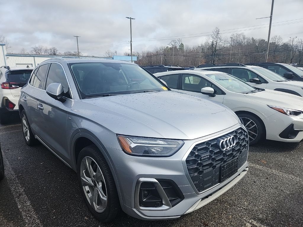 2022 Audi Q5 45 S line Premium quattro Silver Metallic Maryland State Inspected with over 120 point inspection performed by a trained technician., Black Leather, Adaptive Cruise Control w/Traffic Jam Assist, All-Weather Floor Mats, Audi Active Lane Assist, Audi Advanced Key, Audi Beam-Rings, Audi Guard Protection Kit, Audi Phone Box, Audi Virtual Cockpit Plus, Auto High-beam Headlights, Auto-Dimming Power Folding Exterior Mirrors, Brake assist, Cargo Mat, Convenience Package, Delay-off headlights, Driver Seat Memory, ELECTRONIC STABILITY CONTROL, Exterior Parking Camera Rear, Front fog lights, Garage door transmitter: HomeLink, Hands-On Detection Steering Wheel, Heated 8-Way Power Front Bucket Seats, Heated door mirrors, HEATED FRONT BUCKET SEATS, Heated Steering Wheel, Leather Seating Surfaces, Leatherette Covered Center Console & Door Armrests, MEMORY POWER DRIVER SEAT, Outside temperature display, Panoramic Sunroof, Power Adjustable Steering Column, Power door mirrors, POWER LIFT GATE, POWER PASSENGER SEAT, Power steering, Power windows, Premium Plus Package, Privacy Trunk Cover, RAIN SENSING WIPERS, Rear fog lights, REMOTE KEYLESS ENTRY, Roof rack, Security system, SiriusXM All Access Service, Speed control, Steering wheel mounted audio controls, Top View Camera System, Turn signal indicator mirrors, Wheels: 19" 5-Double-Arm Design Bi-Color Finish.