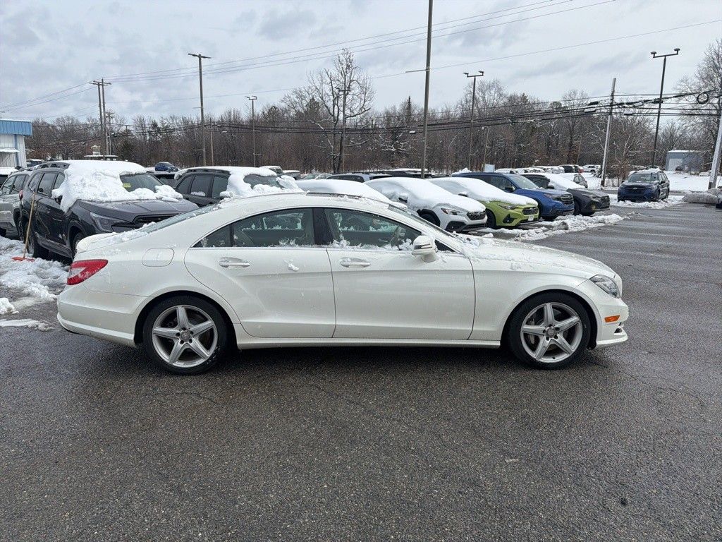 2014 Mercedes-Benz CLS 550 4MATIC® White Maryland State Inspected with over 120 point inspection performed by a trained technician., Adaptive suspension, AM/FM radio: SiriusXM, Anti-whiplash front head restraints, Auto tilt-away steering wheel, Auto-dimming Rear-View mirror, Auto-leveling suspension, Bucket Seats, CD player, Delay-off headlights, DVD-Audio, Four wheel independent suspension, Fully automatic headlights, Garage door transmitter, harman/kardon® Speakers, Headlight cleaning, Heated door mirrors, HEATED FRONT BUCKET SEATS, High intensity discharge headlights: Bi-Xenon, HVAC memory, Leather Upholstery, MEMORY POWER DRIVER SEAT, Memory seat, Navigation System, Navigation System w/HD & Satellite Radio, Outside temperature display, Power adjustable rear head restraints, Power door mirrors, POWER PASSENGER SEAT, Power steering, POWER SUNROOF, Power windows, Premium audio system: COMAND®, Rear fog lights, REMOTE KEYLESS ENTRY, Seatbelt memory, Speed-sensing steering, Steering wheel memory, Steering wheel mounted audio controls, TRACTION CONTROL, Turn signal indicator mirrors, Weather band radio.