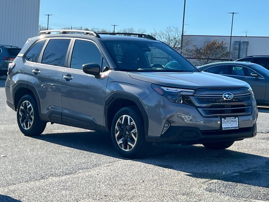 2025 Subaru Forester Premium Pearl Maryland State Inspected with over 120 point inspection performed by a trained technician., Automatic Emergency Steering, Blind-Spot Detection (BSD)/RCTA System, Heated door mirrors, HEATED FRONT BUCKET SEATS, MEMORY POWER DRIVER SEAT, Outside temperature display, Power door mirrors, Power moonroof: Panoramic, Power Rear Gate, Power Rear Gate & Blind Spot Detection w/RCTA, Power steering, Power windows, Premium Textured Cloth Upholstery, Rear seat center armrest, REMOTE KEYLESS ENTRY, Security system, Steering wheel mounted audio controls, Tachometer, Telescoping steering wheel, Wheels: 17" x 7.0 J Dark Metallic Aluminum-Alloy.