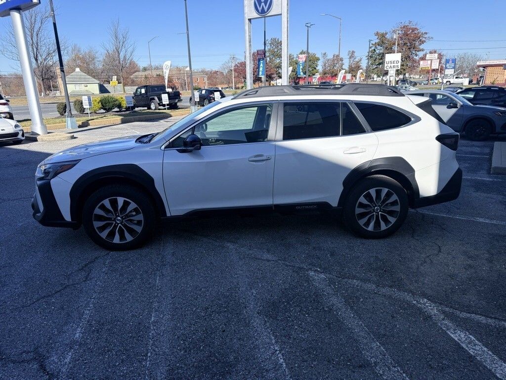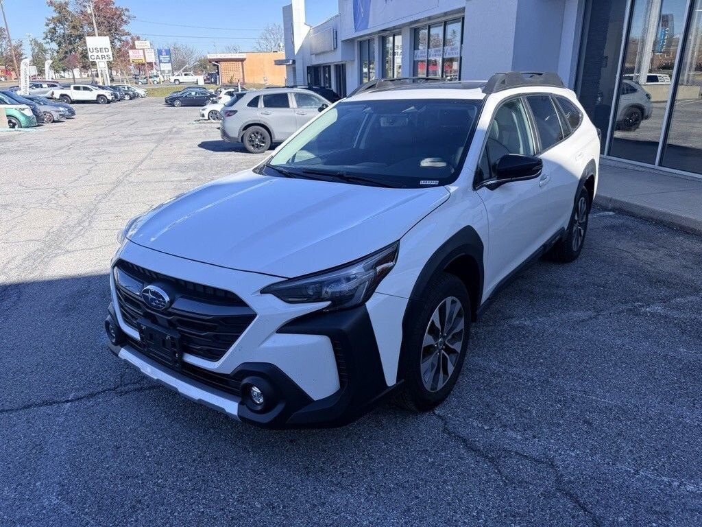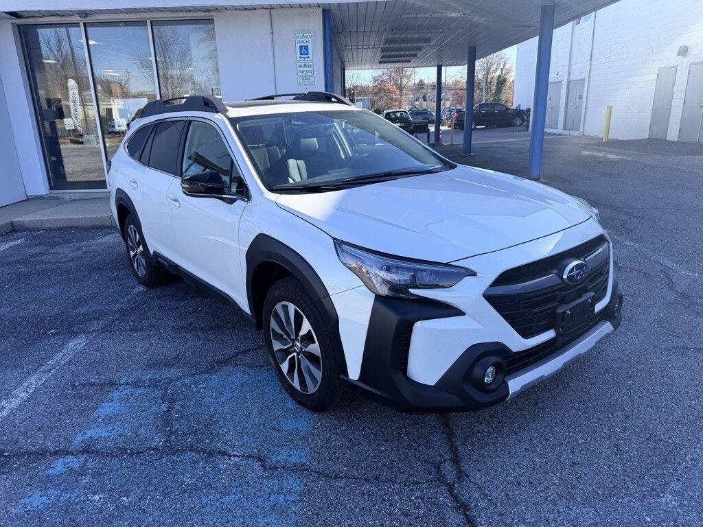 2025 Subaru Outback Limited Crystal White Pearl Maryland State Inspected with over 120 point inspection performed by a trained technician., Apple CarPlay & Android Auto, Brake assist, Emergency communication system: MySubaru Safety (3-year free trial), Exterior Parking Camera Rear, Garage door transmitter: HomeLink, Heated door mirrors, HEATED FRONT BUCKET SEATS, HEATED REAR SEATS, Heated steering wheel, MEMORY POWER DRIVER SEAT, Memory seat, Navigation system: TomTom Navigation w/what3words, Outside temperature display, Perforated Leather-Trimmed Upholstery, Power door mirrors, POWER LIFT GATE, POWER PASSENGER SEAT, Power steering, POWER SUNROOF, Power windows, REMOTE KEYLESS ENTRY, Security system, Steering wheel mounted audio controls, Turn signal indicator mirrors, Wheels: 18" x 7J Black Aluminum-Alloy. CARFAX One-Owner.